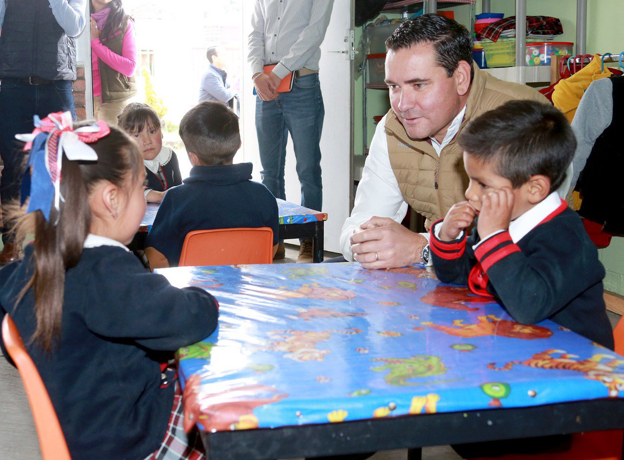 Finalmente, se dirigió al Jardín de Niños “Miguel Covarrubias”, donde recorrió los salones, el comedor y la biblioteca, además de platicar con las niñas y niños que también toman clases de tiempo completo, a quienes dijo que se sentía orgulloso por la dedicación y el entusiasmo con que asisten a su escuela.