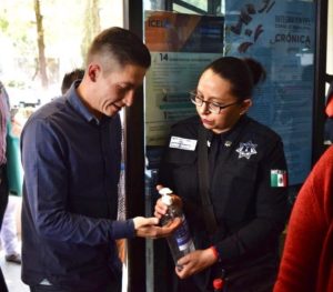En la entrada de las instalaciones, personal con cubrebocas proporcionará gel sanitizante, tomará la temperatura y realizará un pequeño cuestionario para saber si el ciudadano ha sufrido de tos, fiebre o gripe en los últimos 15 días.