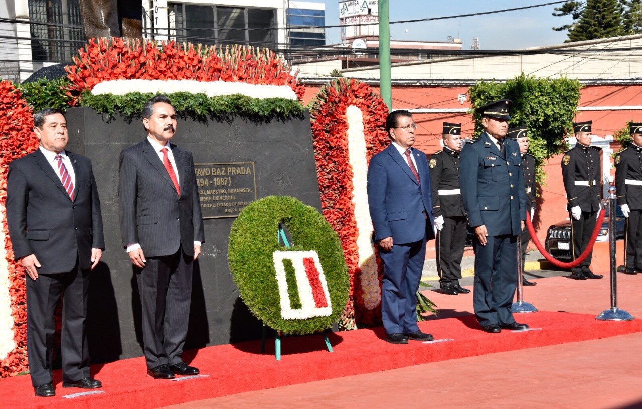 Ante servidores públicos estatales y municipales, así como estudiantes de educación básica, el Secretario Javier Vargas Zempoaltecatl pidió honrar la memoria de mexiquenses destacados como el Dr. Gustavo Baz Prada, al servir a nuestro país y estado, con convicción y entrega.