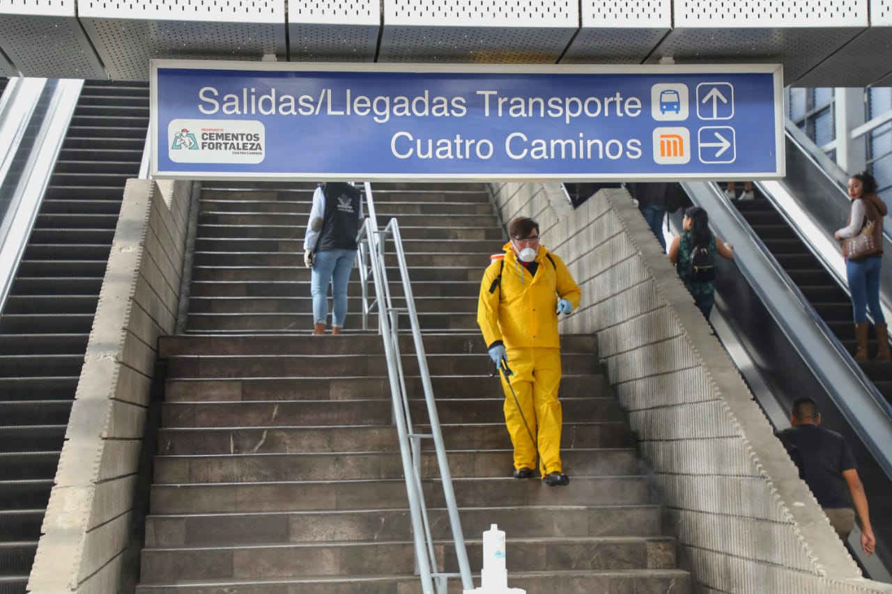 El Gobierno de Naucalpan realizó una jornada de sanitización en las instalaciones del Mexipuerto Cuatro Caminos, por donde diariamente transitan poco más de 380 mil personas.