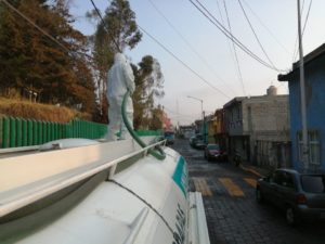 Metepec, México; 07 de mayo de 2020. El gobierno de Metepec mantiene acciones de sanitización, ahora también en la vía pública.