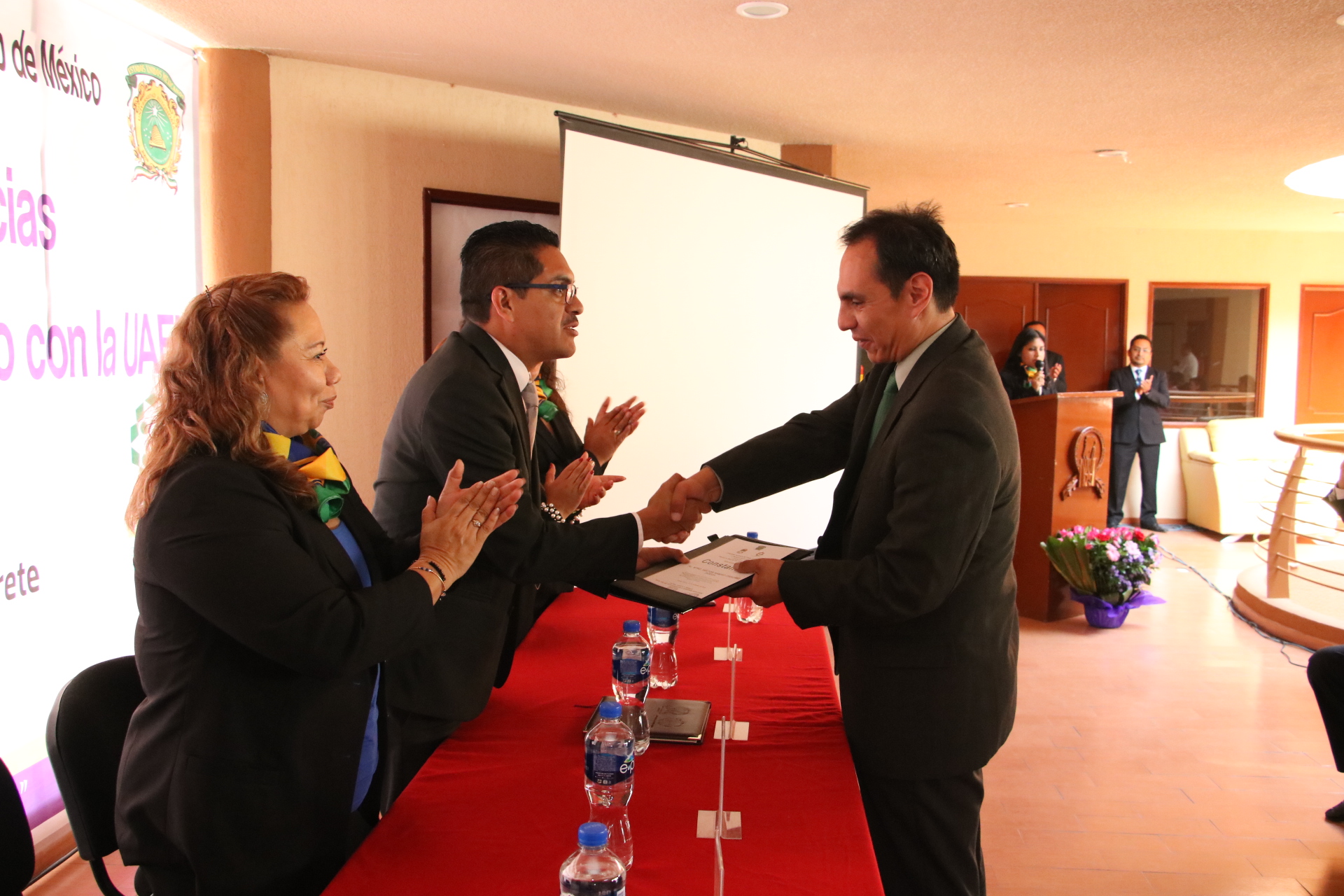 José Manuel Uribe Navarrete, Secretario General del SMSEM encabezó la entrega de estas constancias, que se llevó a cabo a través de tres ceremonias regionales, con la intención de evitar importantes desplazamientos de los maestros.