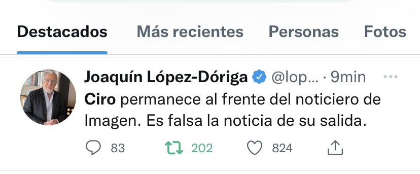 Y después de que periodistas aseguraban la noticia, incluido el Director del Sistema de Radio y Televisión, Genaro Villamil, el periodista Joaquín López Dóriga lo desmintió.