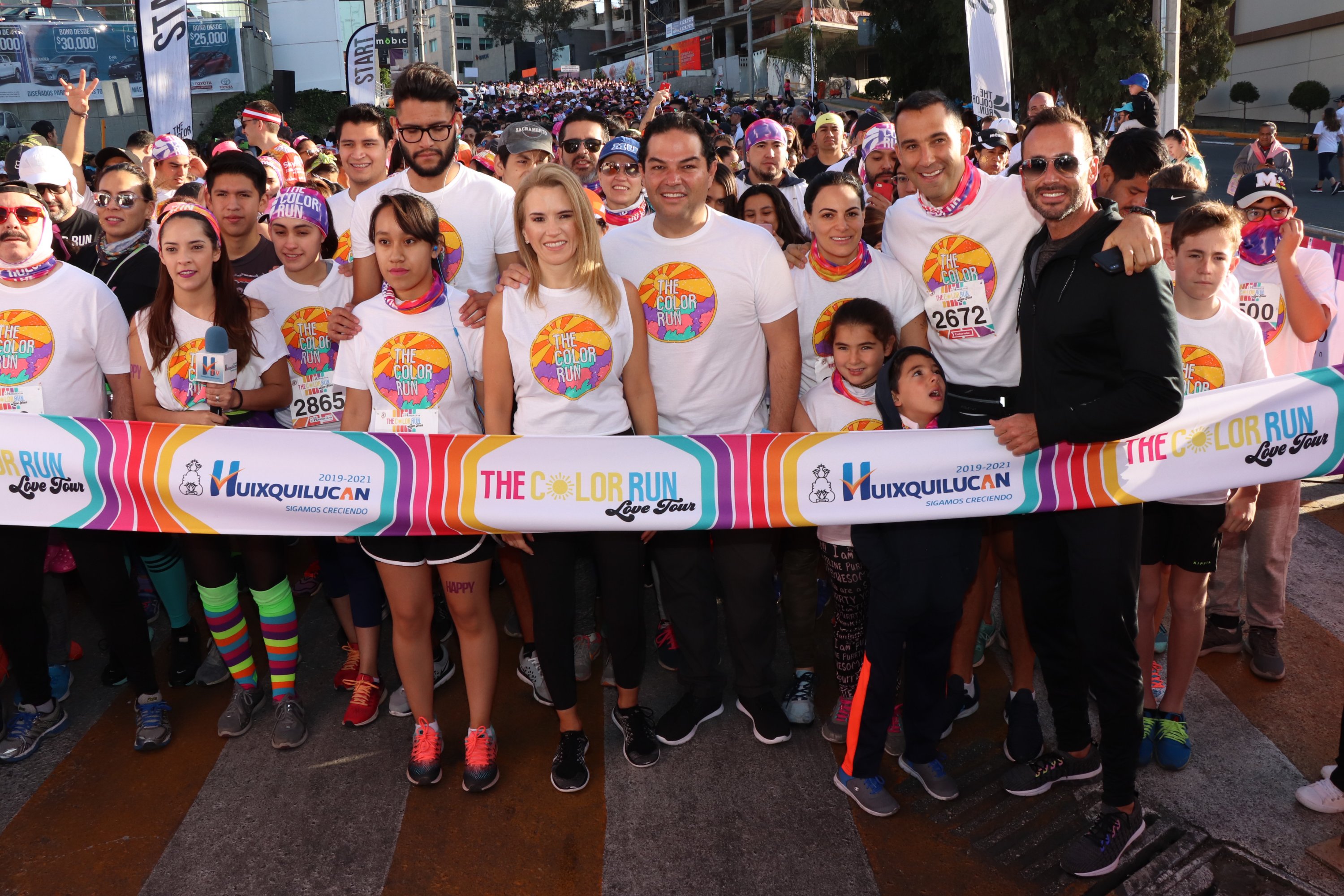 El Edil, así como la presidenta del DIF municipal, Romina Contreras Carrasco, integrantes del Cabildo y gabinete, recorrieron las principales avenidas de Interlomas, en donde fueron bañados con polvos de colores en cada kilómetro.