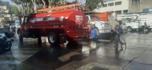 En Tlalnepantla Oriente, se llevó cabo la sanitización de los pasillos, locales y baños públicos del mercado de la colonia Constituyentes de 1857, así como de las calles aledañas, con el apoyo de los comerciantes.