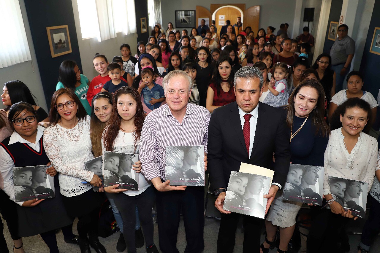 En este sentido, la Secretaría de Desarrollo Social, a través del Programa Editorial del Consejo Estatal de la Mujer y Bienestar Social (CEMyBS), presentó el libro “Entre el sentir y el pensar: embarazo adolescente en el Estado de México”, escrito por Rosalba Vera Núñez y Patricia Romero Arce, e ilustrado por Georgina Yelena Espinosa, el cual aborda el tema del embarazo con historias y testimonios reales de mujeres y hombres que ya han sido padres.