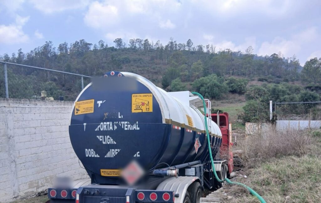 Al asegurar el sitio, los elementos localizaron en el interior un tractocamión marca Freightliner, color rojo, acoplado a una pipa completamente llena de un líquido con características similares a la gasolina, conectada mediante una manguera a una bomba de extracción y una cisterna subterránea que también contenía el recurso.