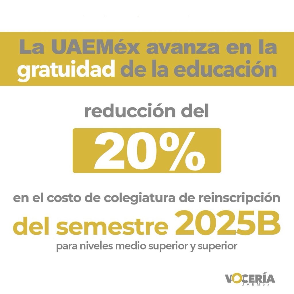 Esta medida forma parte del compromiso institucional de la UAEMéx con la implementación progresiva de la gratuidad educativa, una política que busca garantizar el derecho a la educación superior en condiciones de equidad y justicia social.