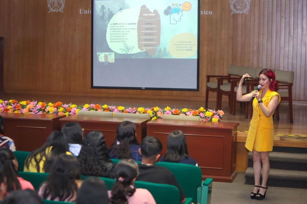 La Universidad Autónoma del Estado de México (UAEMéx) está tomando medidas para abordar la prevención del suicidio entre su comunidad. Andrea Natalia Reyes Avilés, especialista en Género, Violencia y Políticas Públicas, subrayó la importancia de hablar abiertamente sobre el suicidio durante la conferencia «Del suicidio sí se habla», impartida en el Plantel «Ignacio Ramírez Calzada» de la Escuela Preparatoria de la UAEMéx.
