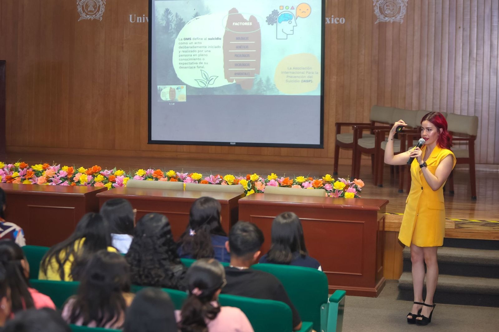 Reyes Avilés enfatizó que el suicidio ha sido estigmatizado por años, y solo hablando del tema y reconociendo su existencia se puede avanzar en la formación y educación necesarias para actuar adecuadamente cuando alguien necesita ayuda. La conferencia contó con la presencia de Ginarely Valencia Alcántara, directora General de Comunicación Universitaria; Joel Isac Ortiz Murillo, subdirector académico; y la alumna Kenia Guadalupe García Quiroz.