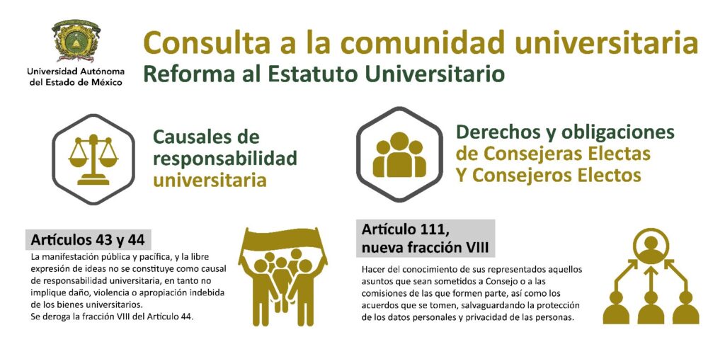 Toluca, Estado de México, 13 de junio de 2025.– En respuesta al Pliego Petitorio General del Movimiento Estudiantil, la Universidad Autónoma del Estado de México (UAEMéx) presentó una propuesta de reforma a los artículos 43, 44 y 111 de su Estatuto Universitario, orientada a proteger el derecho a la libre manifestación y expresión de ideas por parte del estudiantado, sin criminalizar la protesta pacífica.