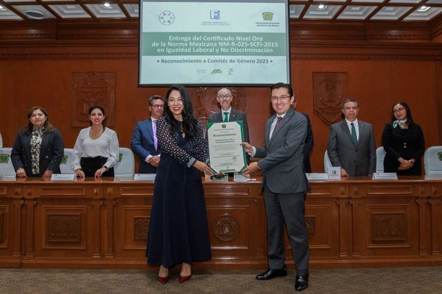 La Universidad Autónoma del Estado de México (UAEMéx) ha sido distinguida con el Certificado Nivel Oro de la Norma Mexicana NM-R-025-SCFI-2015 en Igualdad Laboral y No Discriminación. Este reconocimiento fue otorgado por Factual Services, organismo certificador, en mérito al compromiso institucional de la UAEMéx en la creación de un entorno laboral seguro y equitativo.