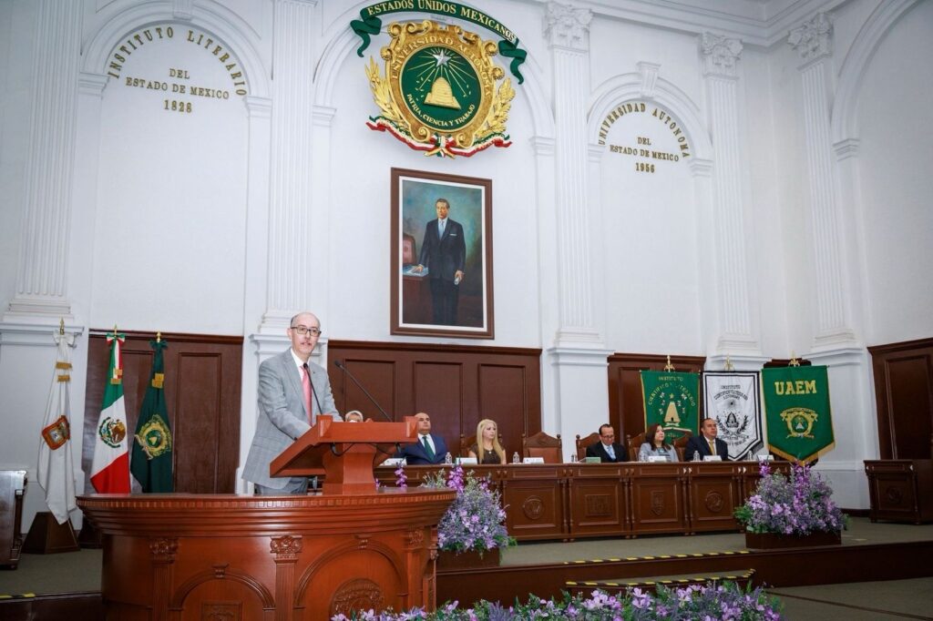 Toluca, Méx; 20 de marzo de 2025. En un esfuerzo por promover la autonomía personal y humanizar la atención médica al final de la vida, la Universidad Autónoma del Estado de México (UAEMéx) y la Secretaría de Salud estatal firmaron un convenio de colaboración en materia de Voluntad Anticipada. La firma tuvo lugar en el Aula Magna “Lic. Adolfo López Mateos” del Edificio de Rectoría, en el marco del Séptimo Simposio de Voluntades Anticipadas y Cuidados Paliativos.