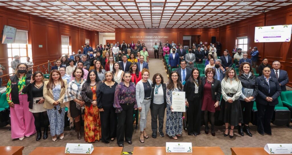 En la Sala “Benito Juárez García” del Edificio de Rectoría, la rectora explicó que el Plan Rector de Desarrollo Institucional 2025-2029 incorporó por primera vez la premisa del cuidado interseccional como eje transversal del quehacer universitario.