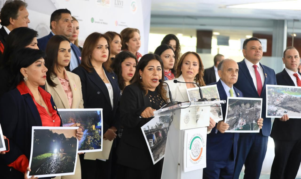 La senadora Cristina Ruiz Sandoval presentó un punto de acuerdo en el Senado para que el gobierno del Estado de México atienda la grave situación que enfrenta el municipio de Jilotzingo tras las recientes inundaciones. Durante una conferencia de prensa, Ruiz Sandoval, acompañada por Ana Lilia Herrera, presidenta del PRI en el Estado de México, la alcaldesa de Jilotzingo, Ana Teresa Casas, y damnificados de la localidad, hizo un llamado a que se restablezca el Fondo de Desastres Naturales (FONDEN) en la ley y el presupuesto de la Federación.