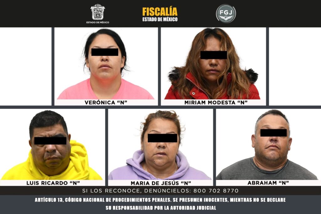 Toluca, Estado de México, 3 de septiembre de 2025.– Cinco personas, identificadas como objetivos prioritarios de la Operación “Restitución”, fueron vinculadas a proceso por su presunta participación en delitos de extorsión y despojo, informó la Fiscalía General de Justicia del Estado de México (FGJEM).