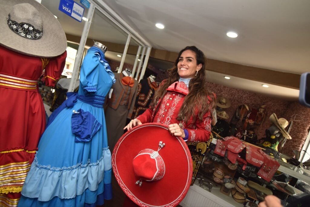 En la Sastrería Escaramusa, la alcaldesa tuvo la oportunidad de probarse el traje de charro que lucirá durante el evento. Este Congreso tiene como objetivo, entre otros, batir el Récord Guinness de más mariachis cantando simultáneamente en su cierre.