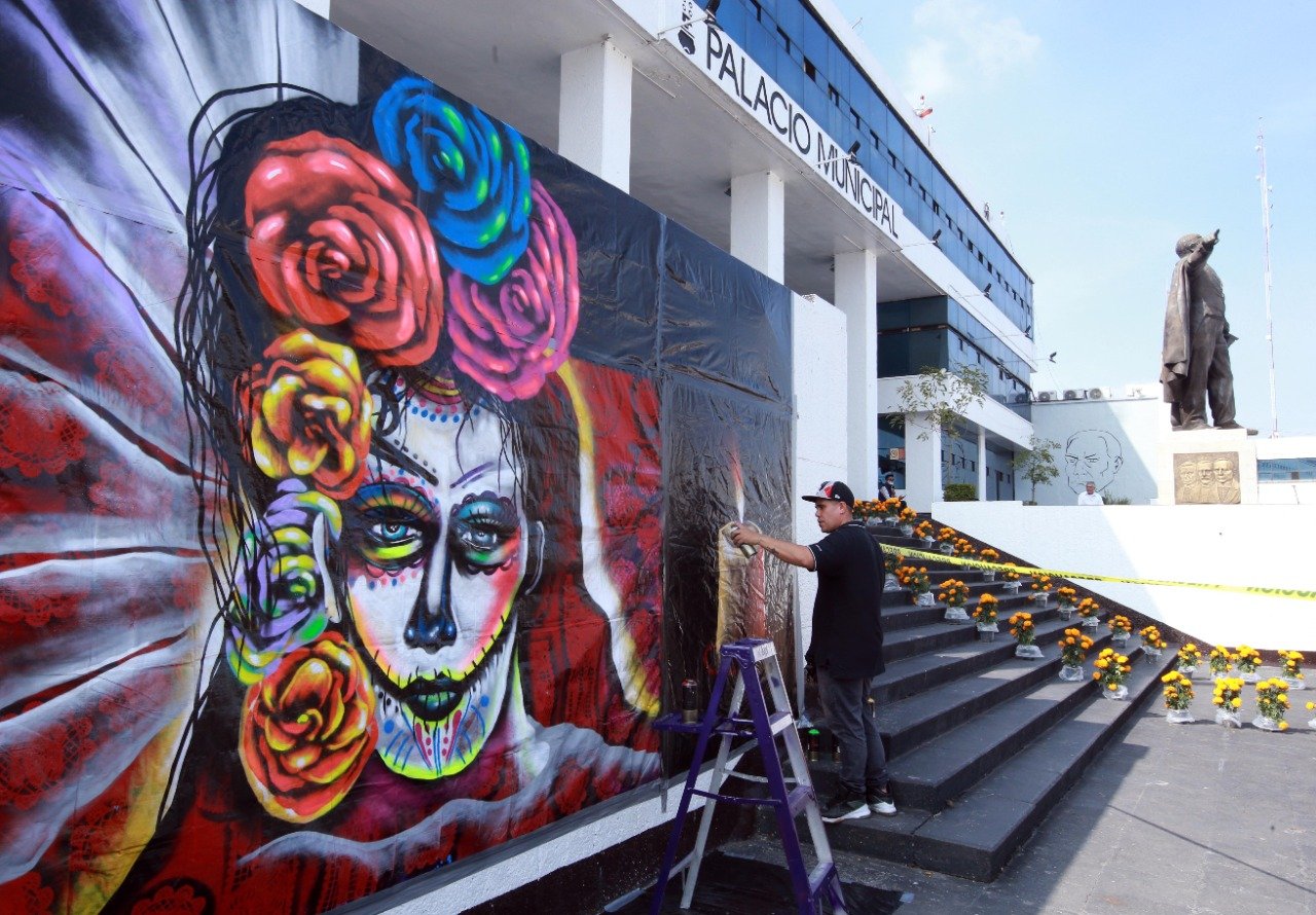 Con motivo de las celebraciones de Día de Muertos, la explanada del municipio de Naucalpan se conviritió en un mega altar, con decenas de ofrendas y tapetes tradicionales.